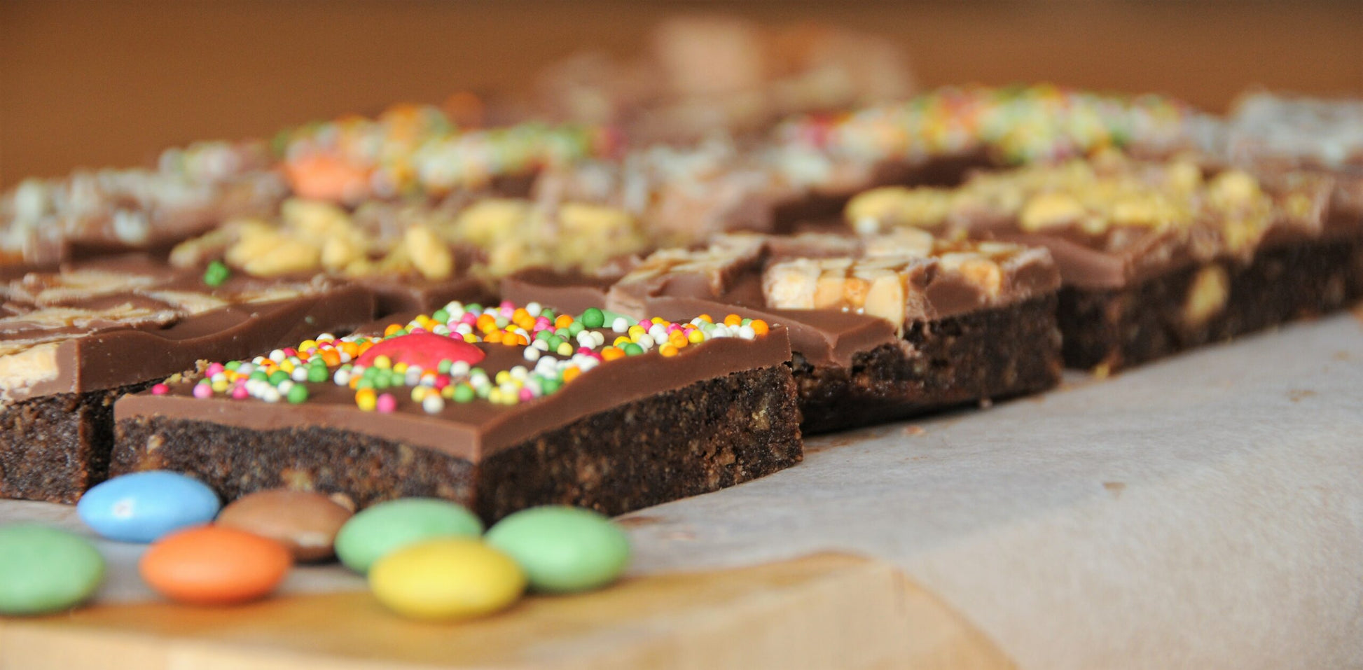 A soft chocolatey biscuity base topped with a generous layer of creamy milk chocolate and finished with toppings of Mars bar, Snickers, Smarties and Crunchie. This is a box packed full of flavour and yuminess! Please note this product Contains NUTS.